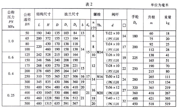 船用铸钢法兰闸阀结构图与尺寸表