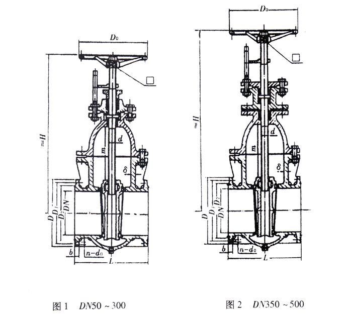 船用法兰铸铁闸阀结构图与尺寸表